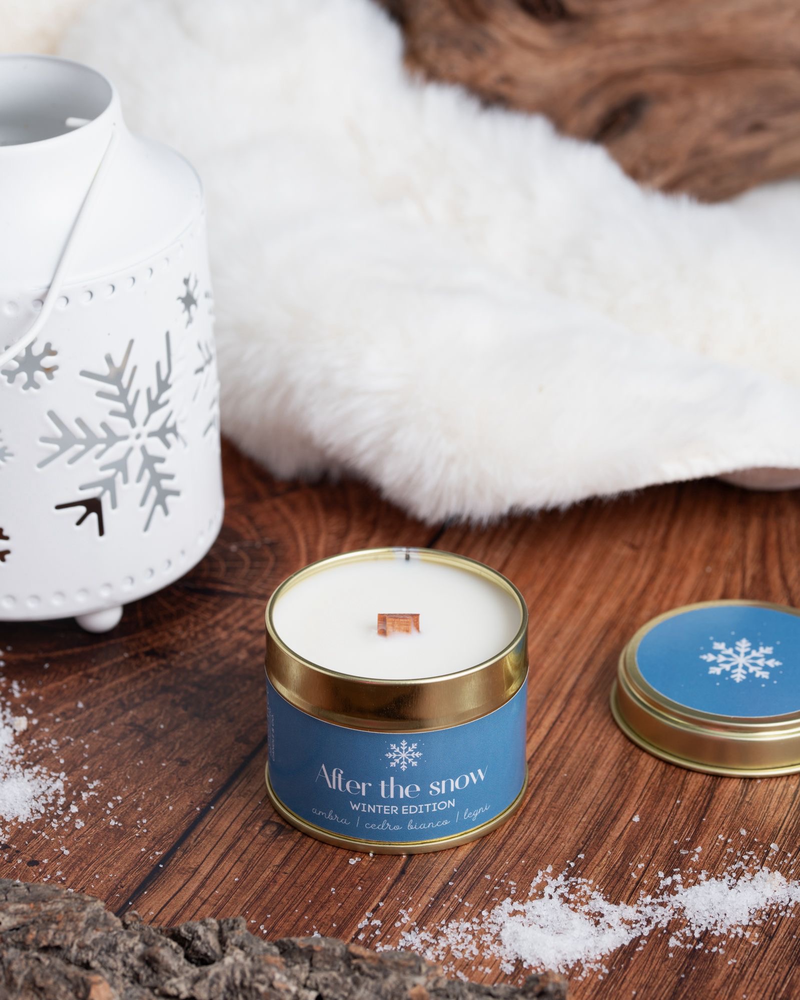 – After the Snow: Una nota legnosa e ambrata, profonda e avvolgente come l’aria dopo una lunga nevicata. Calda, è la più elegante e “maschile” della collezione: perfetta per chi ama i profumi orientali, intensi e avvolgenti. L’ambra si fonde con il cedro bianco e i legni pregiati, creando un equilibrio di forza e calma che accompagna le sere d’inverno.