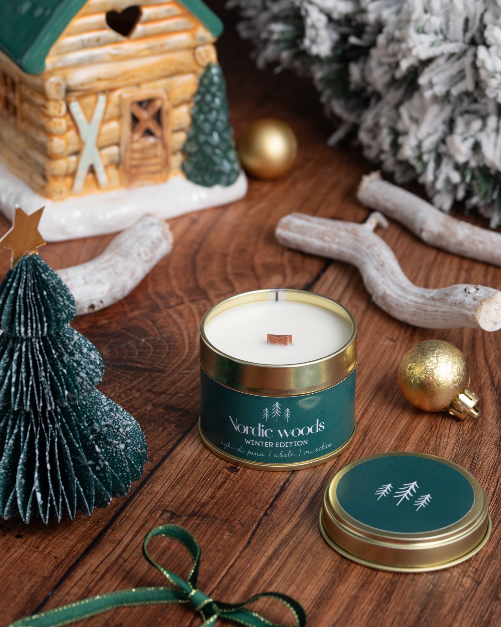 – Nordic Woods: È una passeggiata nei boschi, con il respiro che si fa profondo e la mente che si schiarisce. Una nota verde e balsamica che racconta i boschi del Nord: aghi di pino, abete e muschio si fondono in un profumo verde e fresco, come l’aria limpida invernale. Un equilibrio perfetto tra forza e quiete, come la natura.